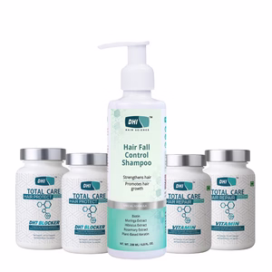 Introducing the ultimate hair care solution for 2 months. Our bundle pack includes our Hair Fall Control shampoo, potent vitamins, and effective DHT blocker for a complete hair care regimen. Achieve healthier, fuller, and stronger hair with this expertly crafted bundle. Try it now!